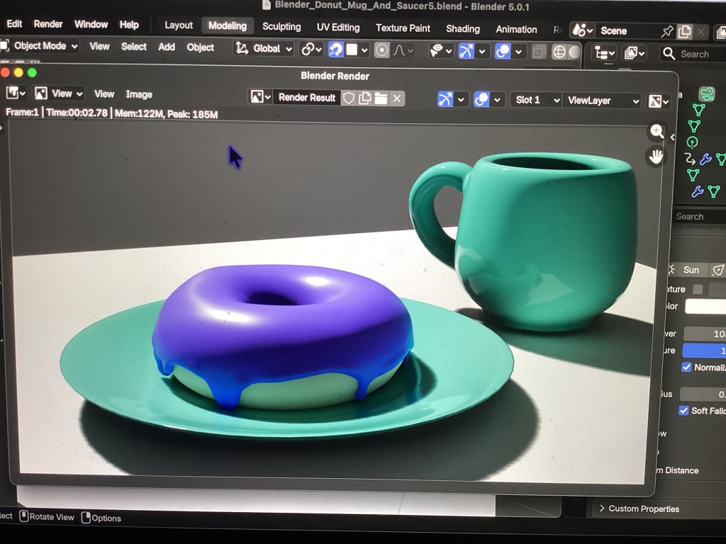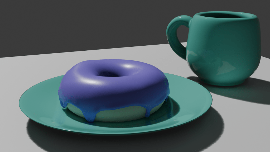 So finally made the donut + plate and a mug in blender!!! And added base colors!